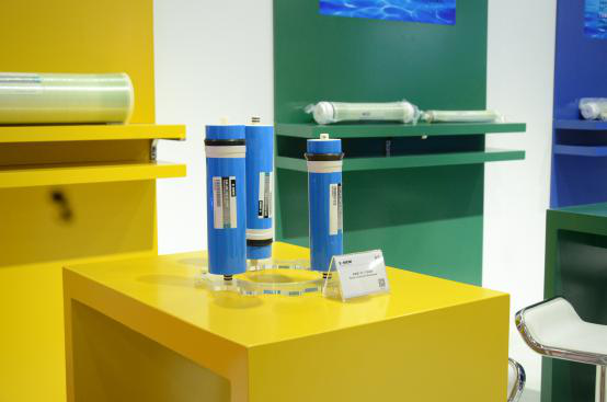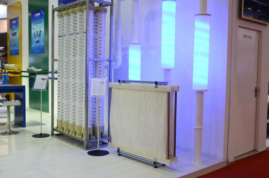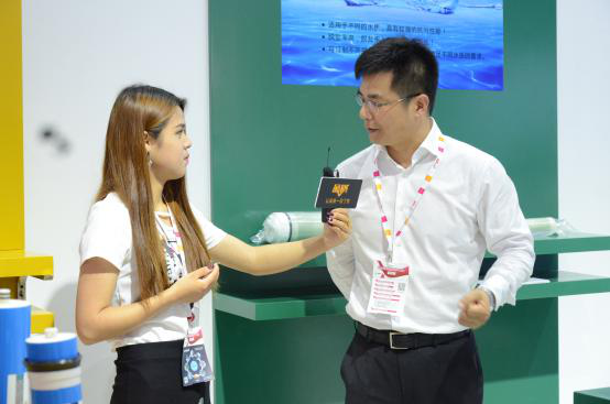展会现场,天创环境董事长丁国良在展位现场接受了中国脱盐的采访并悉心介绍了此次展出的产品,其中一款是TXP浸没式超滤膜,另一款是工业节能膜(EF)系列。TXP浸没式超滤膜,是我们与陶氏化学(DOW)合作研发的一款市政领域新产品,该产品采用最新研发的超高性能XP膜丝技术,具有极高的渗透性、抗污染能力强、低能耗、低运行成本、制水效率高等性能特点,实现了中国自来水水质提标领域解决方案的新突破。目前,这款产品已经在两个十万吨以上的自来水厂中投入了实践应用。