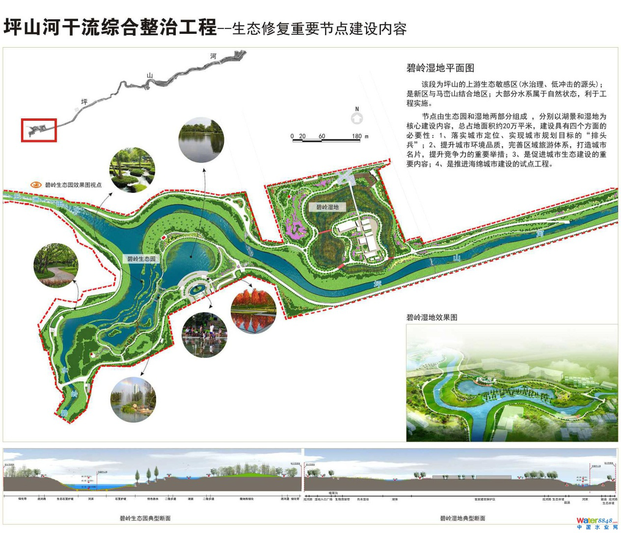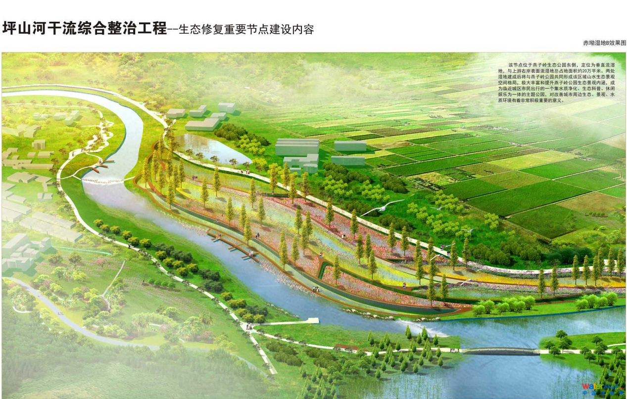 坪山河位于深圳市东北部坪山新区,发源于梅沙尖,干流从西南至东北纵贯坪山新区全境,河道全长13.5km,深圳市境内流域面积129.4km2。坪山河流域面积占整个新区面积的77%,其中包括水库16座,污水厂1座,支流14条。在区域经济和社会高速发展的背景下,坪山河担负了过重的污染负荷,河流水质下降,生态恶化,给沿河和下游城区环境、居民生活以及可持续发展都带来了很大影响。为改善提升坪山河水环境,坪山新区将斥资近42亿元,下大决心,从根本上对坪山河流域进行综合治理,为新区打造深圳“东北门户”营造良好的生态环境