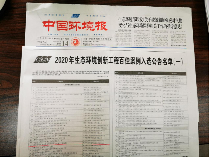 2021年伊始,由国家生态环境部主管、中国环境报社主办的“2020年生态环境创新工程百佳案例”入选名单发布。杭州天创环境科技股份有限公司建设与运营的“浙江省杭州市良渚污水处理厂三期工程”成功入选全国百佳工程案例。