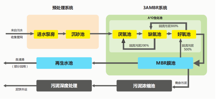 浙江省杭州市良渚污水处理厂三期工程的深度处理单元设计规模3.0万m3/d,处理工艺为天创环境自主研发的高效膜生物反应器(MBR)集成技术。
