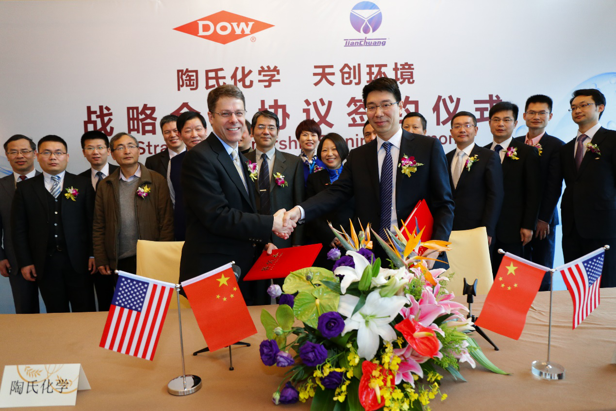 基于国内水资源短缺的现状,市政自来水亟需提标升级的广阔市场前景下,早在2016年1月25日,杜邦水处理的前身(陶氏水处理)与天创环境签订《关于浸没式超滤膜市场商务战略合作的框架协议》,双方将结合陶氏水处理在膜领域的行业领先优势、拥有成熟的超滤解决方案以及其它水及过程处理方案可供借鉴以及强大的研发能力和天创环境优秀的系统集成能力和水务项目运营能力,在工业水处理和污水回用方面具有行业领先优势,达成共识,双方携手共同开发浸没式超滤膜组件,以进一步在快速增长的水务市场拓展业务。