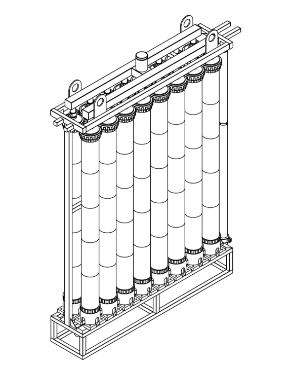 浸没式膜过滤系统采用开放式外压超滤膜组件,将其完全浸没于膜池之中,通过液位压差结合抽吸泵负压抽吸产水,以膜组件取代传统混凝、沉淀、过滤等工艺过程,广泛应用于饮用水安全、污水处理厂提标、河道冶理、再生水资源、工水废水回用、海水淡化等领域。